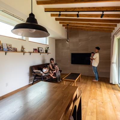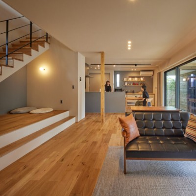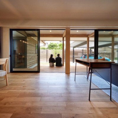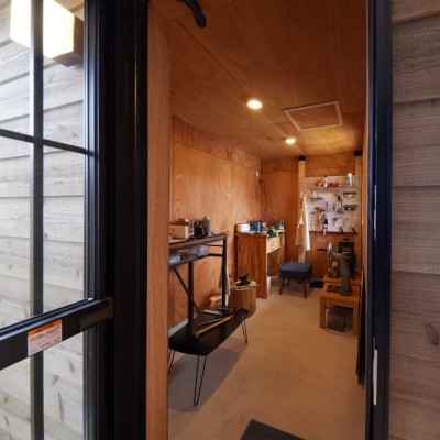 趣味室としての「離れ」。別棟とすることで音を気にせず趣味に没頭でき、且つリビングとはデッキを介してつながる、適度な距離感で計画。