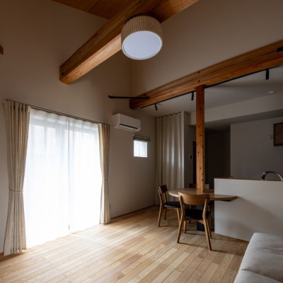 築約16年の住宅をフルリノベーション。耐震・断熱性能を強化し、対面キッチンや室内物干スペースなどを盛り込んだ子育て世帯に優しい住まいへアップデート。