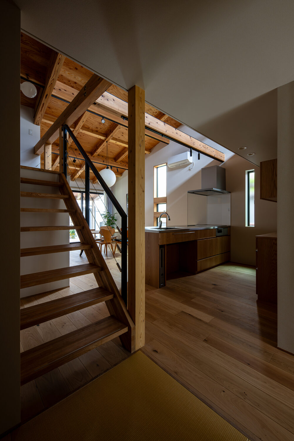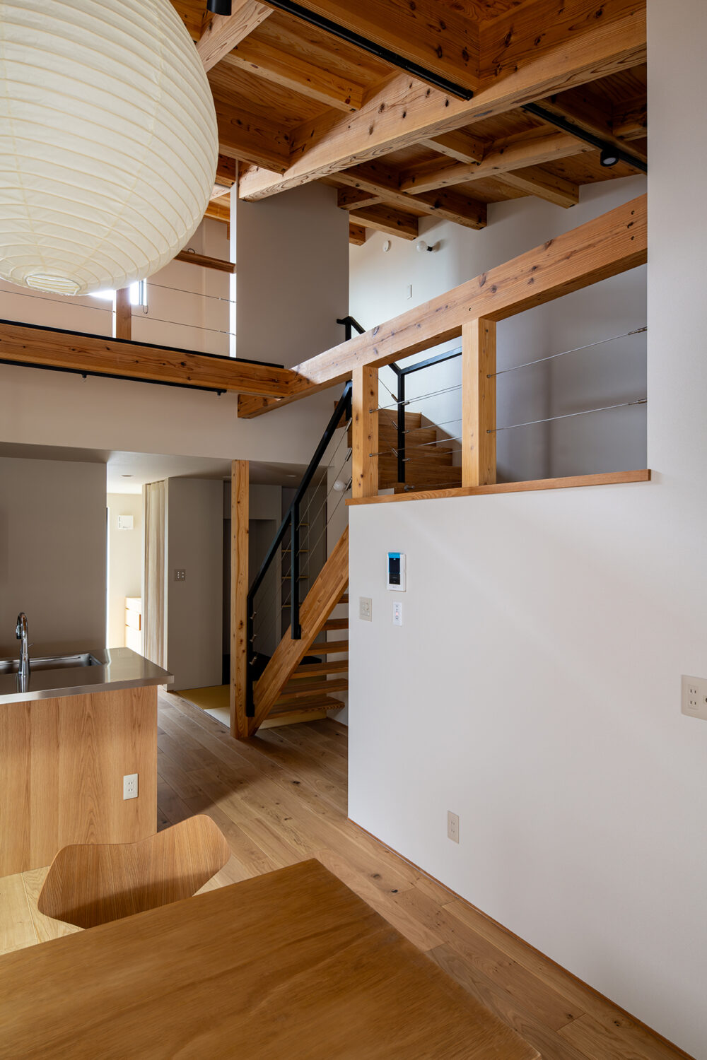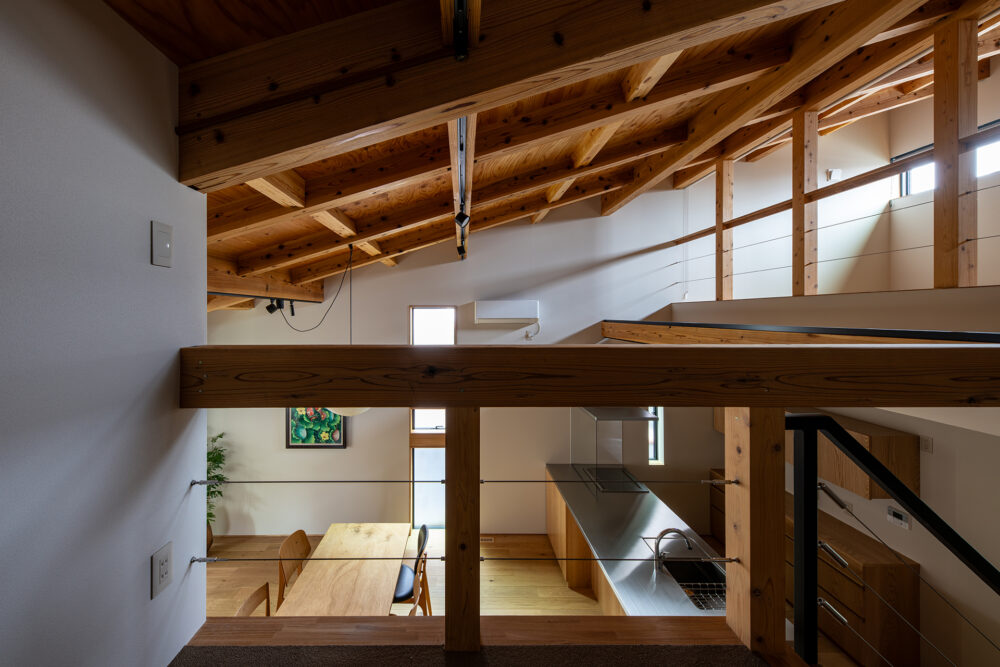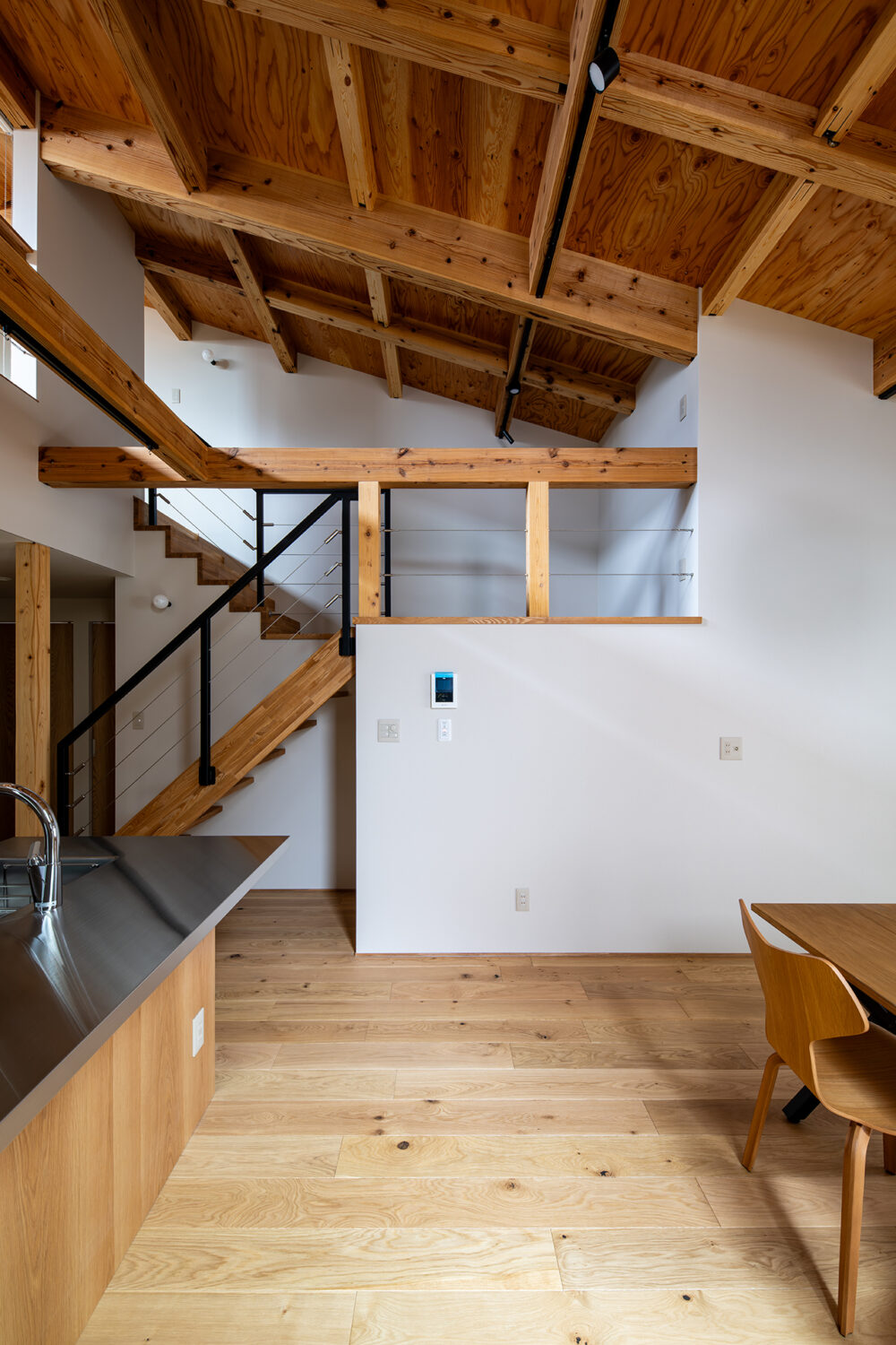 水平性と立体性を併せ持つ「半平屋」という住空間をかたちづくっている。