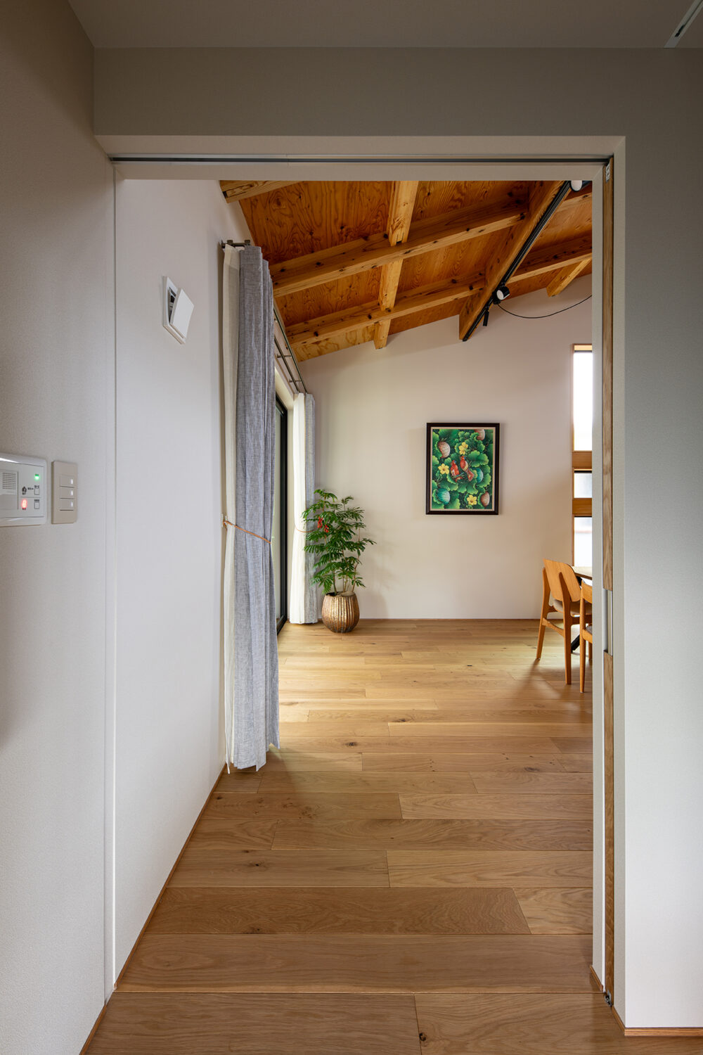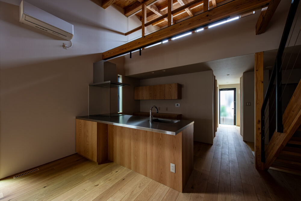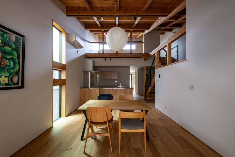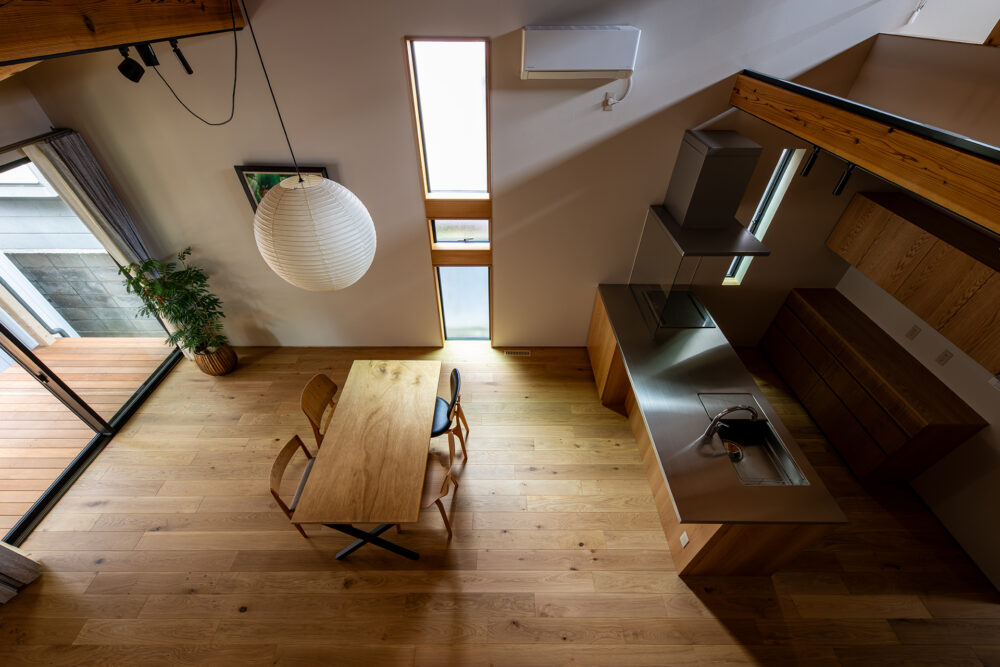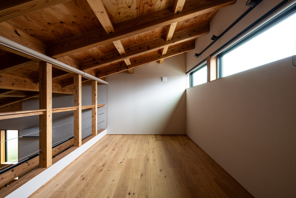 水平性と立体性を併せ持つ「半平屋」という住空間をかたちづくっている。